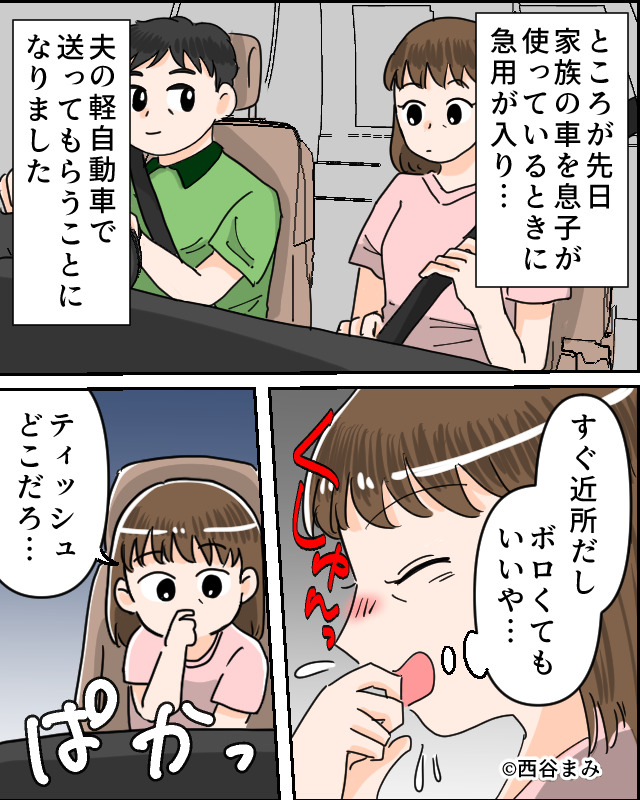 普段私はその車に乗ることはないのですが、急用があり夫の車を使うことに。