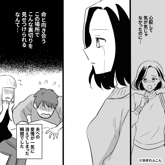 命の危機に瀕した夫のもとへ駆けつけ、残酷な真実を突きつけられた絶望感は計り知れません。