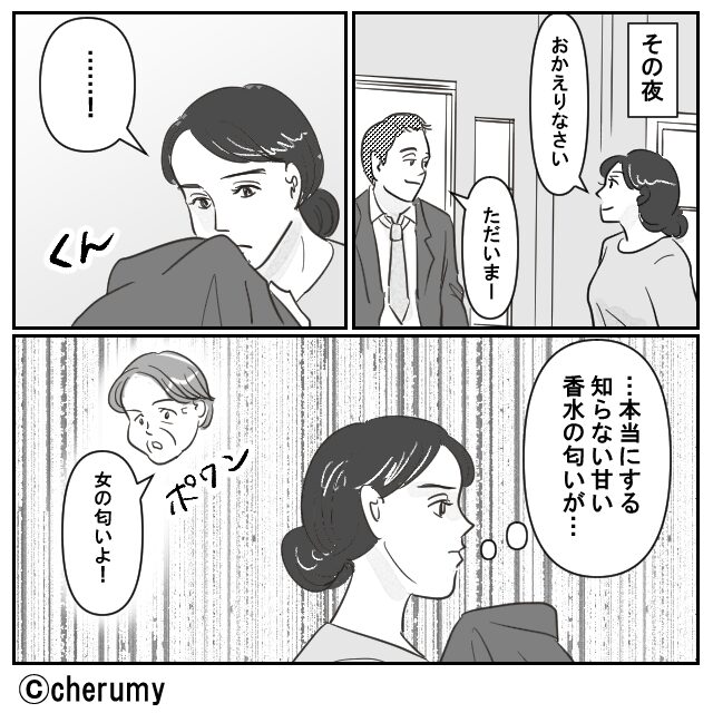 義母の一言から始まった「不確かな不安」は、夫の裏切りという真実へと至りました。