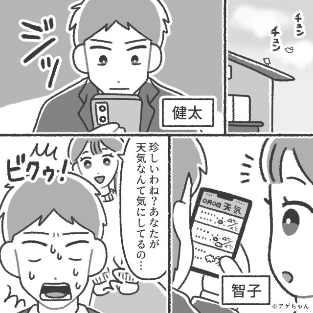 オリジナルコンテンツ 2026年1月14日 「浮気してんの?全部吐きなさい」妻が出した“証拠“で夫は顔面蒼白!?“天気予報”で夫の浮気を察知した話 日常生活の中で、ふとした瞬間に「いつもと違う」と感じることはありませんか。 それは、長年共に過ごしてきた夫婦だからこそ察知できる、目に見えない違和感かもしれません。 今回は夫の何気ないスマホ操作から、隠された真実を突き止めた妻の体験談を紹介します。 平穏な日常の裏側に潜む予期せぬ違和感と、そこから得られる学びついて考えてみましょう。 珍しいわね? なんだか様子がおかしい どこかしら? なにかあるかもしれない 次のページ その夜 1 2