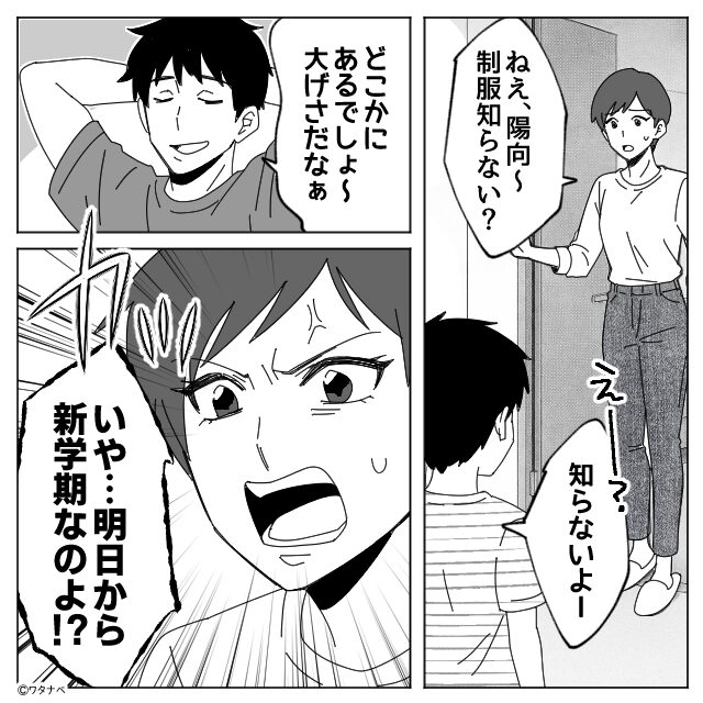 今回は、新学期の前夜に、制服紛失という危機に直面した妻の体験談を紹介します。