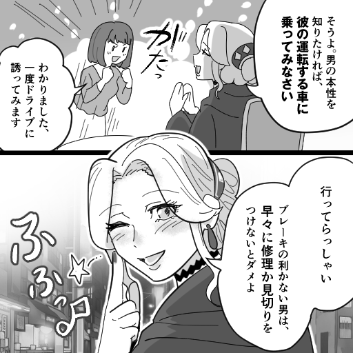 そこで占い師が示し彼女が実行したのは『車の運転から見極める』という対処法。