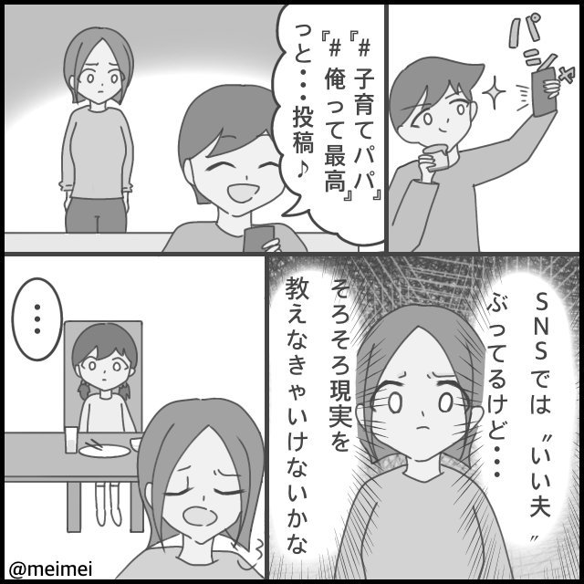 育児に関わっている姿を強調しながら、実際の負担はほとんど引き受けていない。