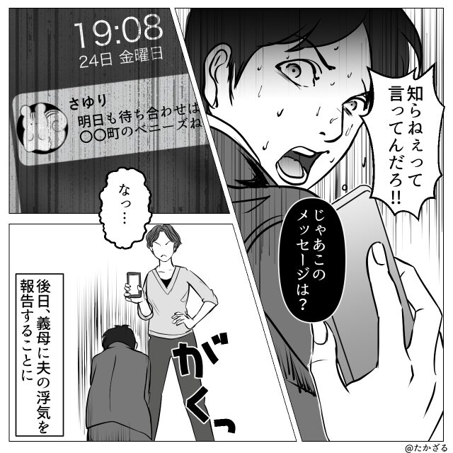 ・夫が「知らない」と不貞を認めない場合、義両親に相談して外堀を埋める。