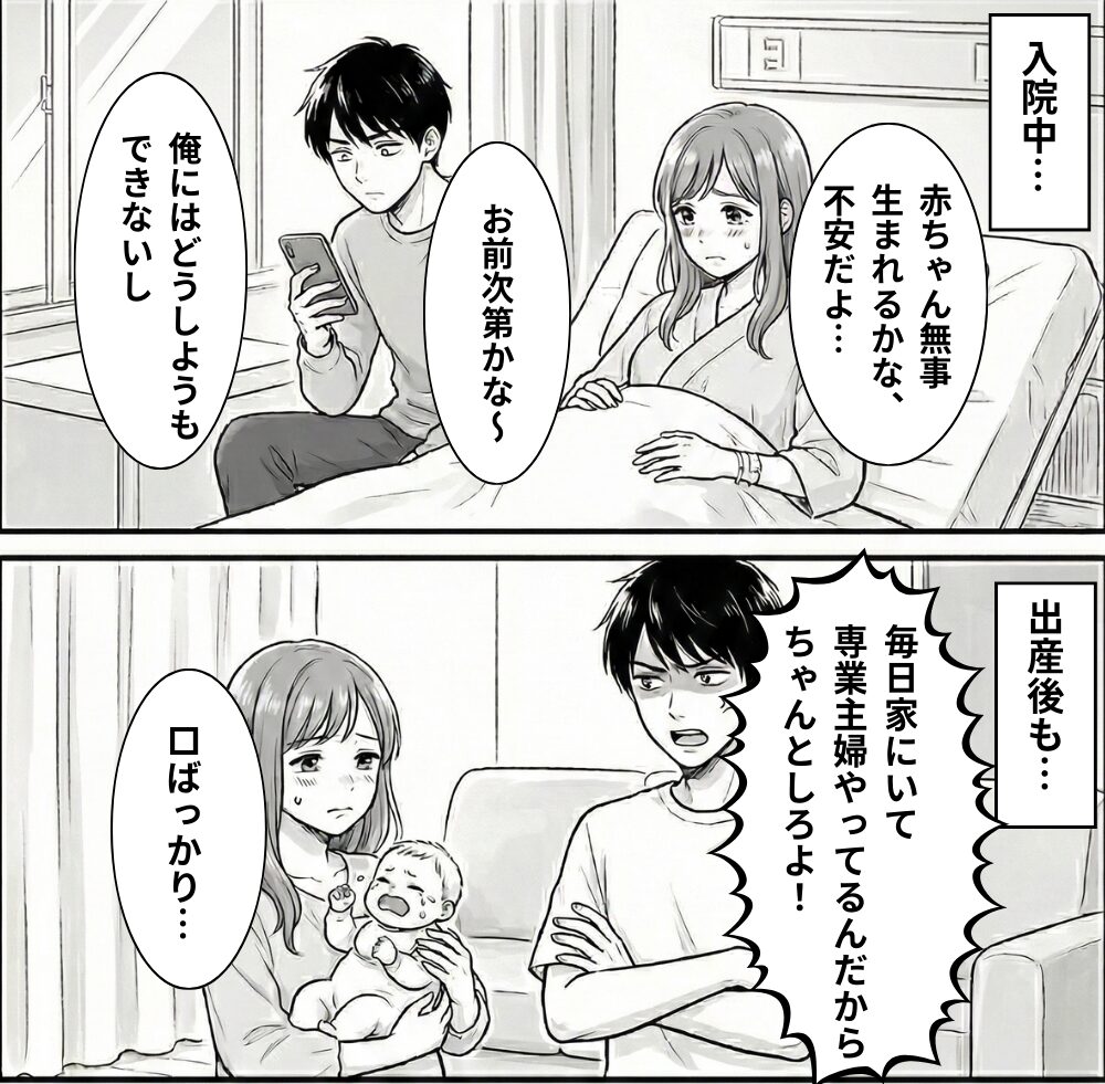 夫にも、心身ともにつらいことを打ち明けましたが、私に寄り添ってくれることは一切ありませんでした。