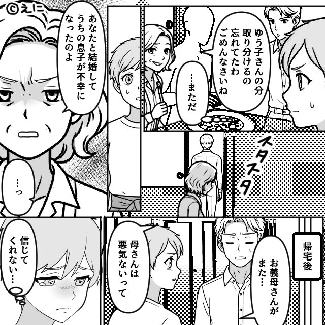 義実家の集まりで…嫁だけ“食事をあげない”義母!?しかし⇒「母さん…?」ついに夫にバレ、義母「それは、その…」