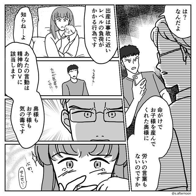 出産という極限状態で医師からの指摘を受け、自身の置かれた環境を冷静に判断できたことは、今後の人生を切り拓くための大きな転換点となったのではないでしょうか。