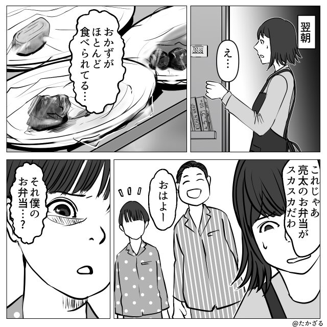【息子の弁当】まで食べ尽くす夫!?しかし翌日⇒夫「なんだよこれ!?」冷蔵庫を開け…真っ青になったワケ