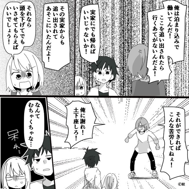 挙句の果てに 「俺に謝れ! 土下座しろ!」と叫びます。