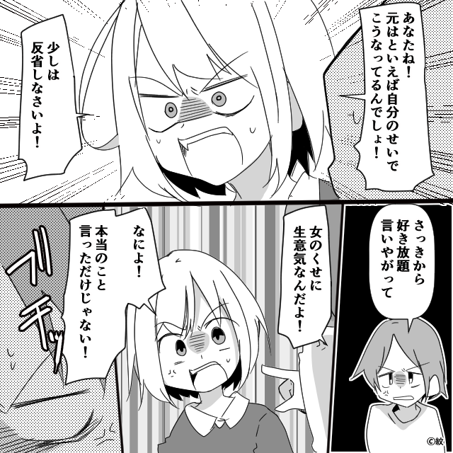 そして「あなたね!元はといえば自分のせいでこうなってるんでしょ!少しは反省しなさいよ!」と一言。