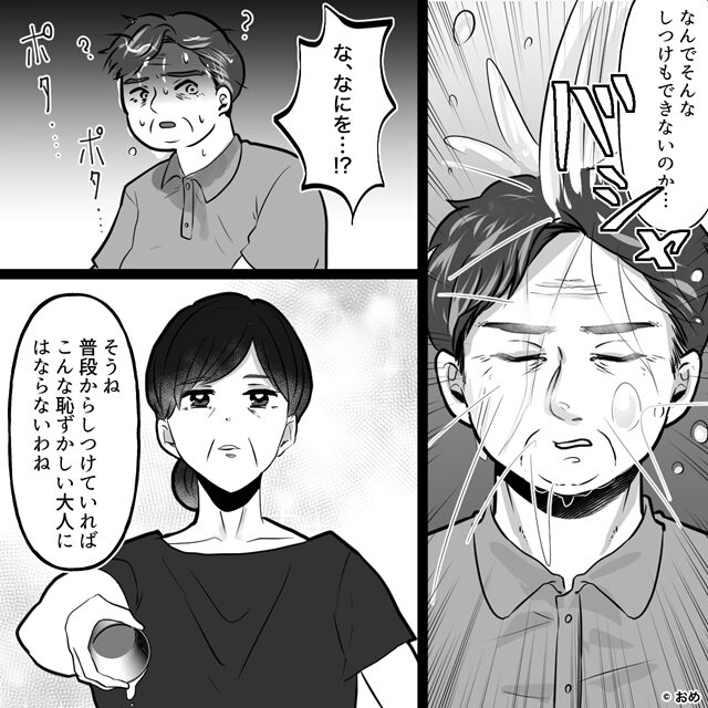 そして静かに「確かに、普段からしつけていればこんな恥ずかしい大人にはならないわね」と言い放ちました。