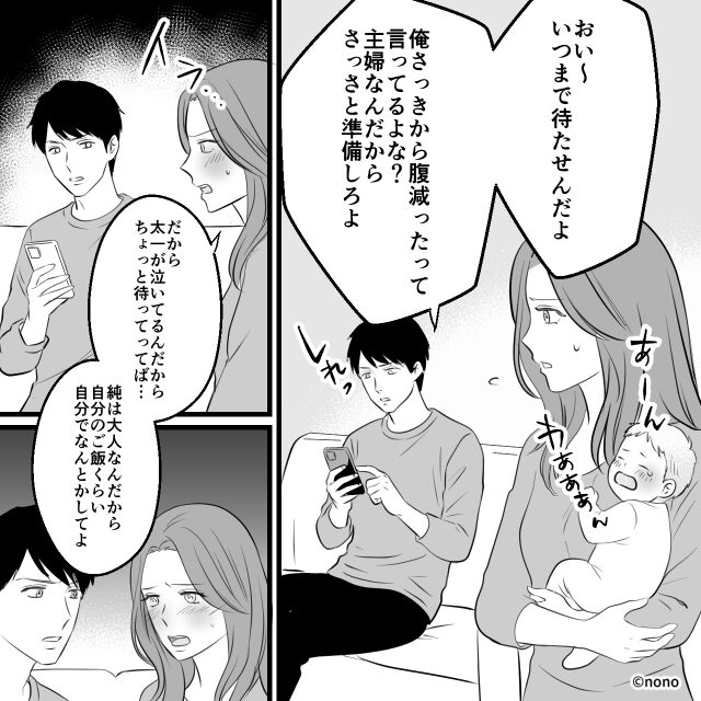 それどころか、泣き止まない子どもの世話で食卓の準備が数分遅れただけで、「いつまで待たせるんだ!」と怒鳴り散らします。