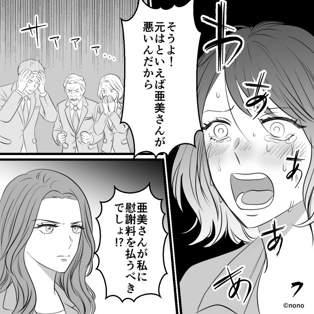 すると彼女は逆上し、「元々はあんたが彼を私から奪ったのよ!慰謝料を払うのはあんたの方でしょ!」と、自分勝手な理不尽極まりない持論を叫び散らしたのです。