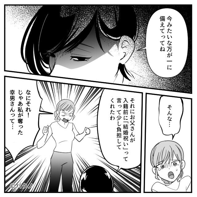 挙句の果てに「離婚すれば財産分与で半分は彼の、つまり私のものになるんだから」と勝ち誇った顔をしたのです。