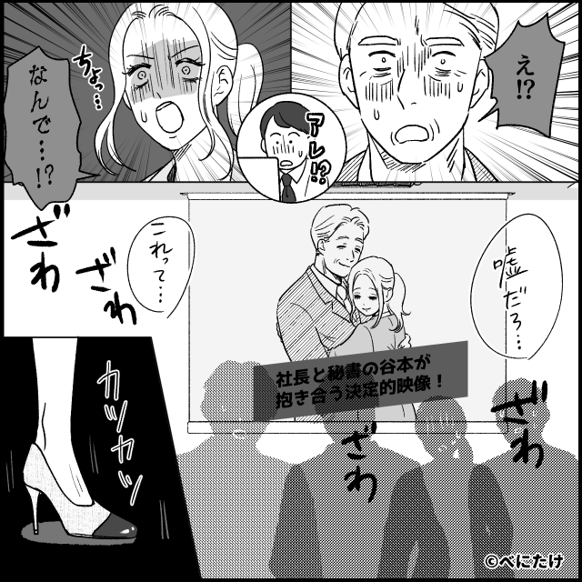 静まり返った会議室で、社長と同期女性の顔はみるみるうちに青ざめていきます。
