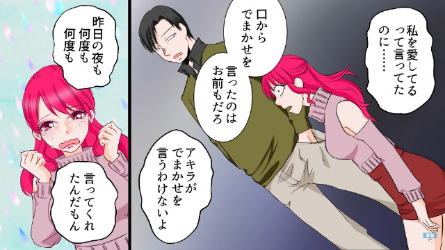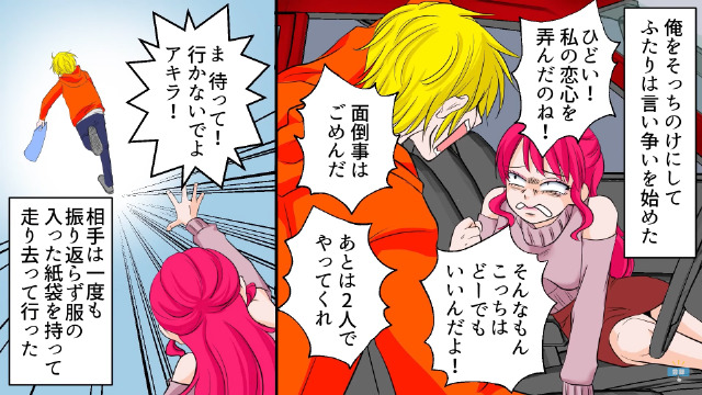 主人公が悲劇のヒロイン気取りの妻に呆れていたそのとき、浮気相手は妻を捨ててその場から逃げ出して…。