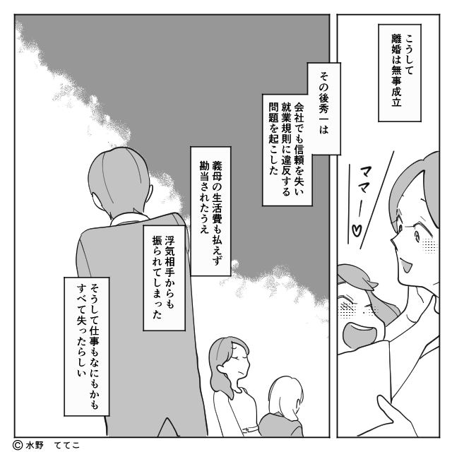 連載マンガ 2026年3月23日 フリーランスを見下す夫との生活#10話 夫はすべて失ったらしい 娘を守っていく 次の話>> 作画:水野 ててこ 原案:Grapps編集部 編集:Grapps編集部 1 2