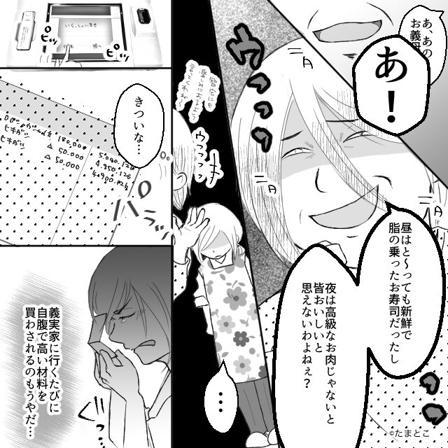 連載マンガ 2025年9月18日 嫁イビリ義母の末路#5 朝食の食器まで押しつける義母 夕飯は高級なお肉じゃないと 次の話>> 作画:たまとこ 原案:Grapps編集部 編集:Grapps編集部 1 2