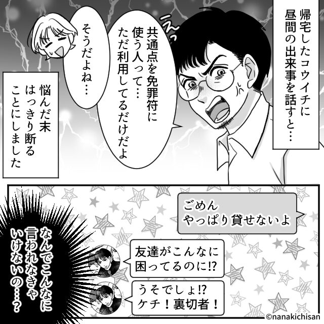 連載マンガ 2026年4月10日 推し活夫婦はトラブル続き!?#6話 悩んだ末に断ることにした しばらくして… 次の話>> 作画:nanakichisan 原案:Grapps編集部 編集:Grapps編集部 1 2