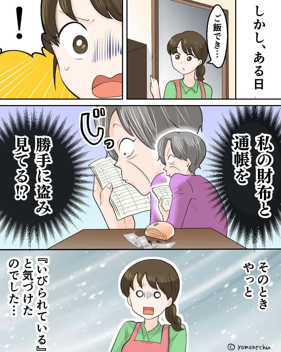 オリジナルマンガ 2026年1月14日 嫁が気に入らない義母は「この切り方おかしいわね」文句ばかり…⇒ある日“義母の悪質な行動”を見てしまい、いびられていると気づく!? 義母が激怒!? いびられている… 嫁が気に食わない挙句、嫁の財布や通帳を勝手に見ていたとは…。 いびりのひどい義母に、絶句した衝撃エピソードでした。 作画:yamanechu ※こちらは実際に募集したエピソードをもとに記事化しています。 次の話>> 1 2