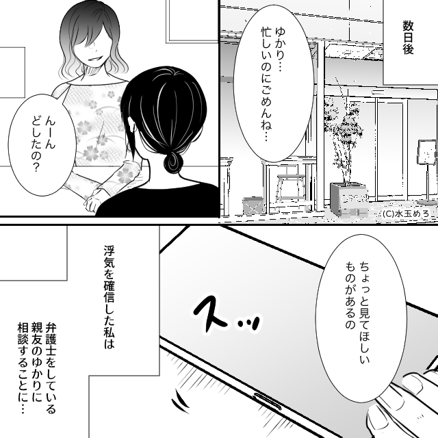恋愛 2026年4月30日 妻の稼ぎで浮気していた夫に離婚を突きつけた話#4話 【PR】 弁護士をしている親友・ゆかりに相談することにした 「やっぱりそうだよね、最近の行動がおかしいと思ってたの」 「美月、これからどうするつもり?」優しく聞いてくれる親友 【PR】 次のページ 「決定的な証拠をゲットしようか!現場を押さえられたら完璧よ」 1 2
