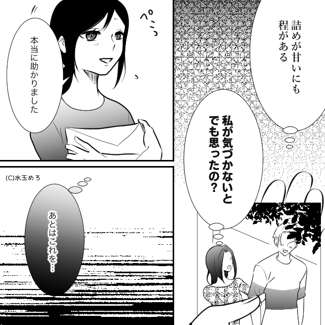 恋愛 2026年4月30日 妻の稼ぎで浮気していた夫に離婚を突きつけた話#5話 【PR】 探偵に依頼して浮気現場を撮影、証拠はバッチリ 2人の会話も録音、全部に腹が立つ 次の話>> 作画:水玉めろ 原案:Grapps編集部 編集:Grapps編集部 【PR】 1 2