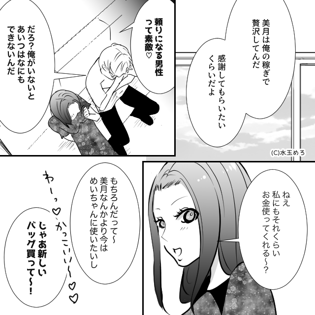 恋愛 2026年4月30日 妻の稼ぎで浮気していた夫に離婚を突きつけた話#7話 【PR】 浮気相手・めいは、夫を完全にお金目当てで利用していた 「私にもそれくらいお金使ってくれる〜?」「新しいバッグ買って〜!」 「美月は俺の稼ぎで贅沢してる」と勘違いする夫 【PR】 次のページ 本当に稼いでいるのは美月の方、夫はそれにも気づいていない 1 2