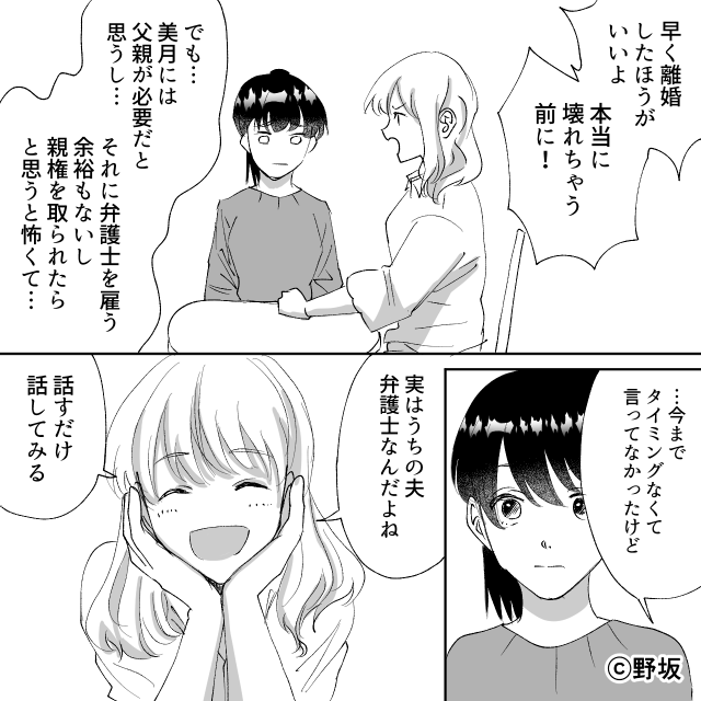 恋愛 2026年4月30日 嫁イビリ義母と浮気夫から裁判で離婚した話#6話 久々に連絡をくれた学生時代の友人に、私は思い切って現状を打ち明けた 「早く離婚したほうがいい、本当に壊れちゃうよ」と友人は親身に聞いてくれる 「実はうちの夫、弁護士なんだよね」——友人の一言が光明をもたらしてくれた 次のページ 「弁護士を雇う余裕もないし、親権を取られたら…」と不安をこぼす私 1 2