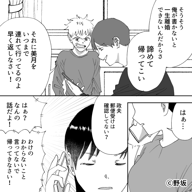 恋愛 2026年4月30日 嫁イビリ義母と浮気夫から裁判で離婚した話#9話 実家に戻り、こちらで仕事も見つけて美月も新しい暮らしに慣れてきた だが政夫は離婚届に記入せず、「一生離婚できないから諦めて戻ってこい」と強がる 義母も「いつまで美月を連れて行ってるのよ」と私を責めるばかり 次のページ 私は冷静に告げた——「訴訟してるんだけど」と、最後の切り札を見せつける 1 2